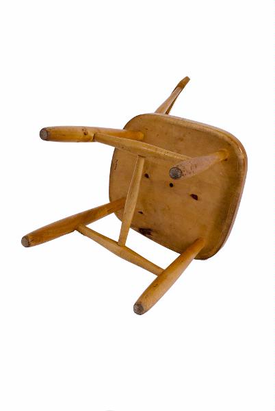 Lars-Gunnar Bomans pappa tillverkade ett skrivbord till sin son 1945. Stolen inköptes till skrivbordet och stod först på Kungsgatan 14, ett rum och kök. Där stod bordet och stolen under en klädhylla som fanns i en vrå i köket. !949 flyttade familjen till Kungsgatan 16, två rum och kök. Där fanns en alkov där sonen sov. Bordet med stolen stod vid huvudsidan av sängen och användes mest som ett nattduksbord. På bordet stod en lampa. Ägaren berättar att han någon enstaka gång, när de hade främmande, stängde in sig i alkoven och satt vid bordet för att läsa sina läxor. Alkoven hade snedtak och inga fönster, vilket gjorde att det inte var särskillt trevligt att sitta där.