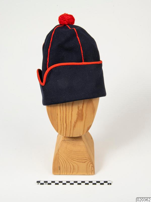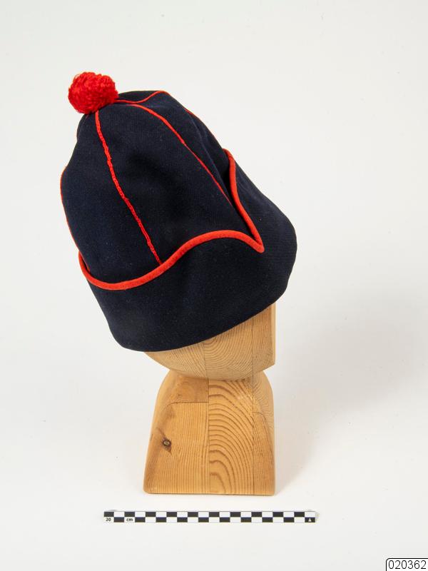 - Mössa, samisk för herre, marinblå med sex kilar med röda kanter, samt en uppvikt mösskant och röd ulltofs. Mösskanten är vid ett parti V-formad och vidare är mösskanten likt kilarna rödbeklädda. Den uppvikta delen är som bredast 9,5 cm.