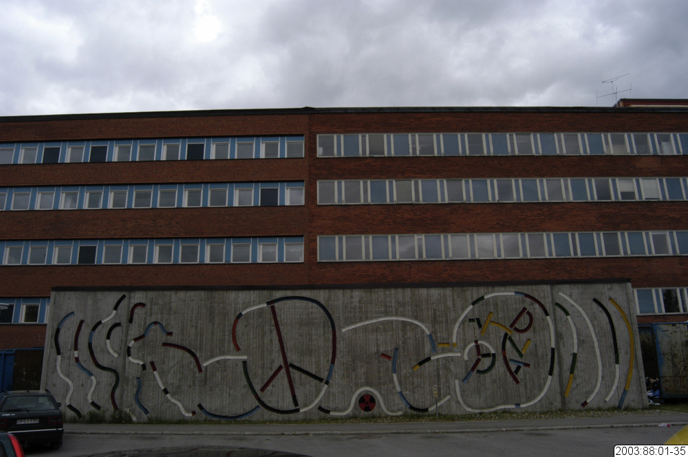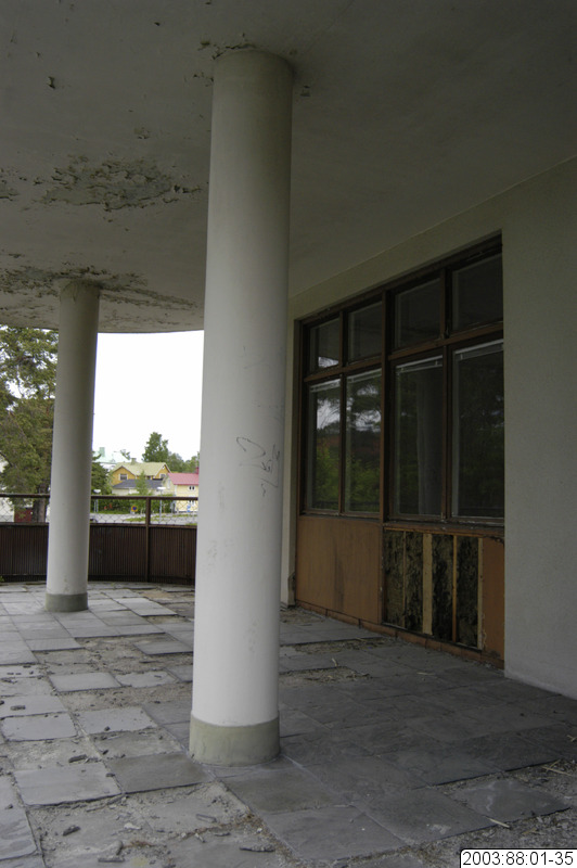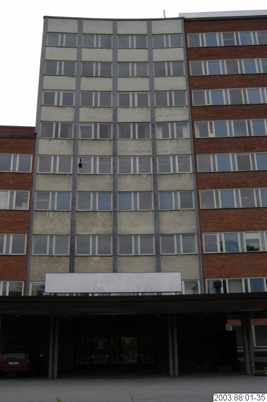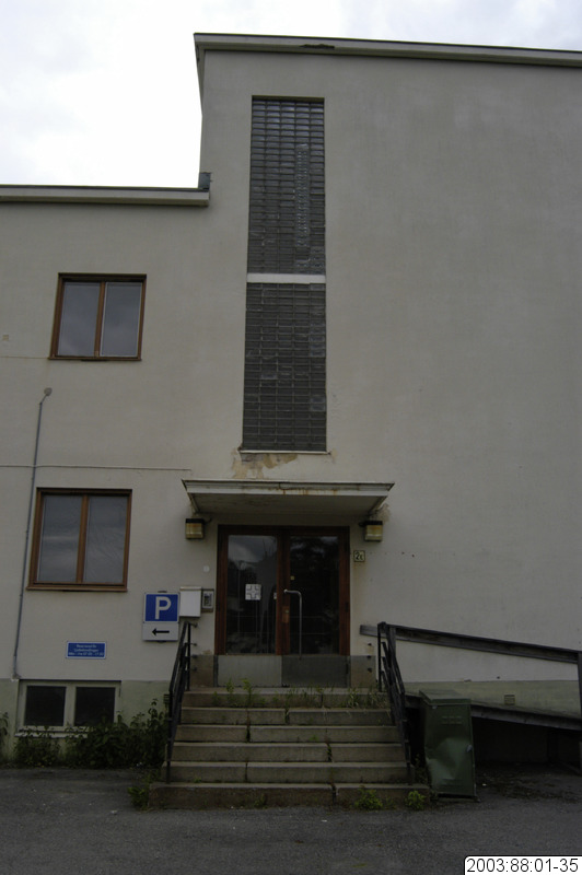 2003:88:01-35 :: fönster, vårdcentral, affisch, balkong, fasad, räcke, sporthall, vägg, museum, rivning, sjukhus, lasarett, skola