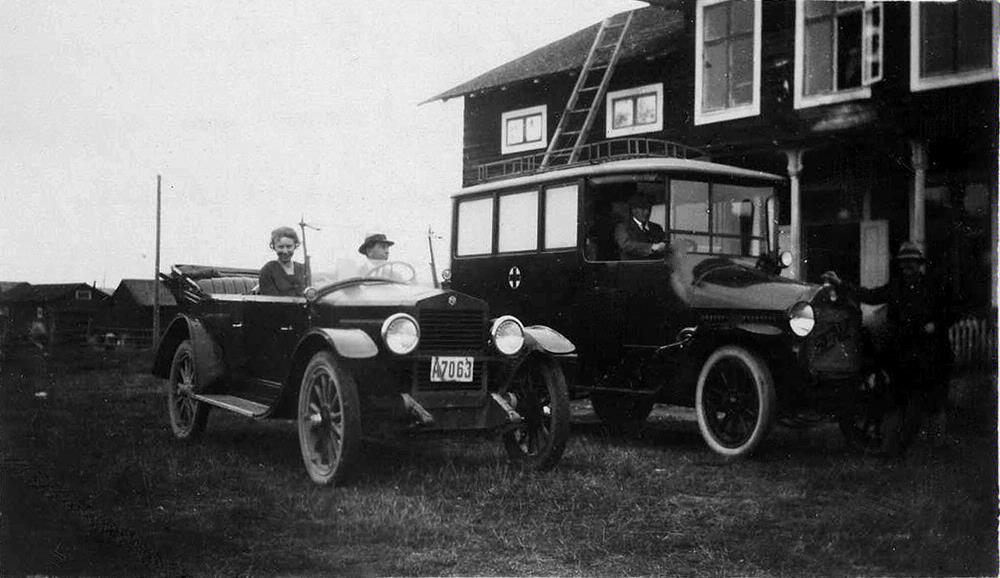 - "Läkarbilen (samt den för ortens vägar för tunga ambulansbilen) uppställd i Pajala. Personerna: sjuksköterska, läkare och chaufför. I bakgrunden läkarbostaden vars övre våning nyttjas som sjukhärbärge."