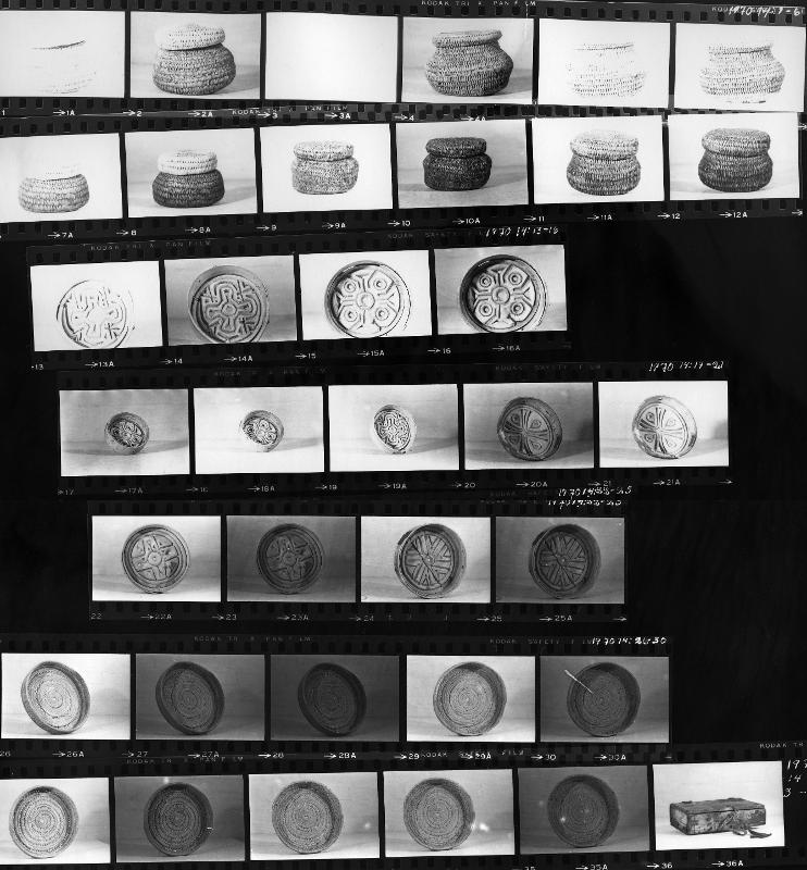 1970:14:1-36 :: föremålsarkiv, husgeråd, träkärl, rotslöjd, ask, ostform